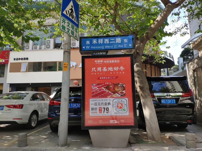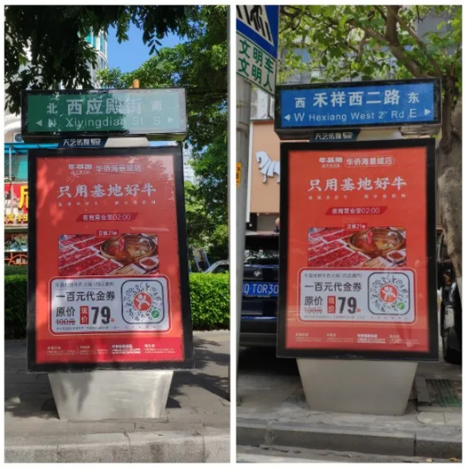 ?;嘏c天藝傳媒強強聯(lián)手,精準宣傳將?;厝A僑海景城店附近的城市路名牌戶(hù)外媒體進(jìn)行定點(diǎn)宣傳。